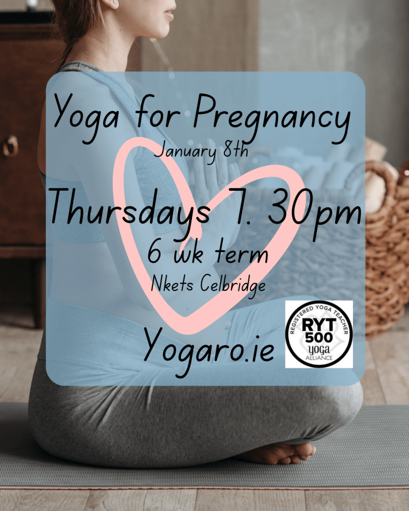 Prenatal yoga returns on Thursday January 8th for a 6 week block . Class is held in the hall space of North kildare Educate Together School.